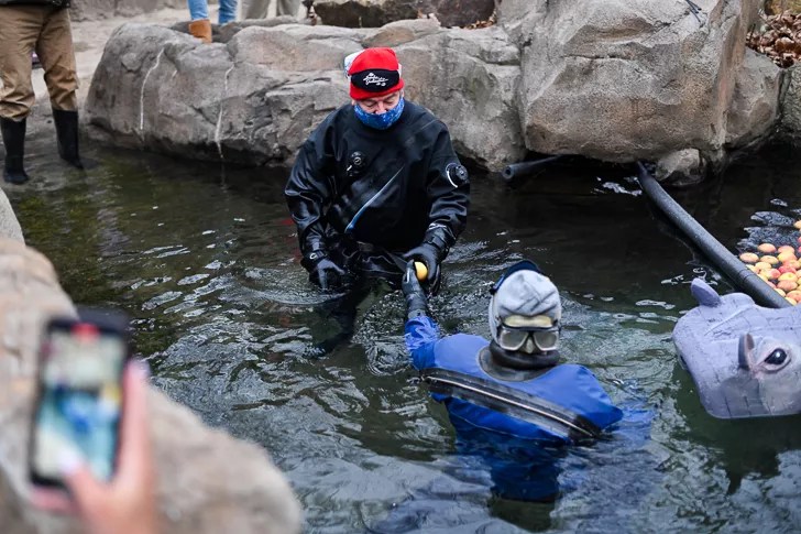 Float4Fiona is a floating fruit race where people purchased a numbered apple, which was placed in Fiona and Bibi’s habitat at Hippo Cove.