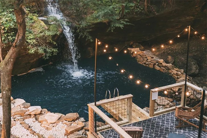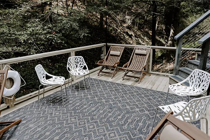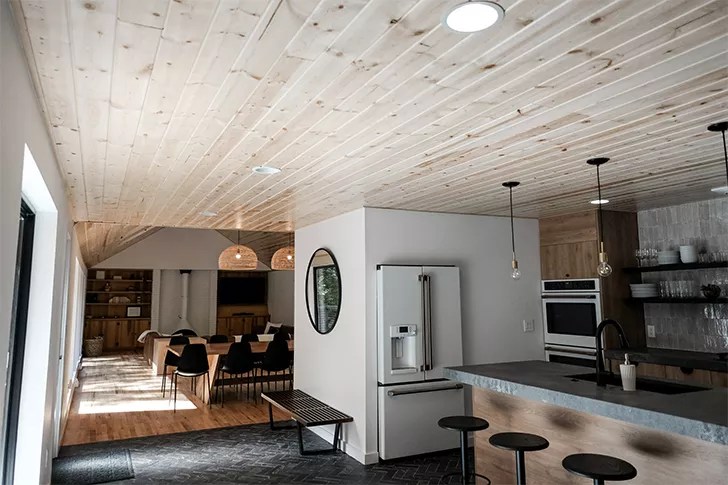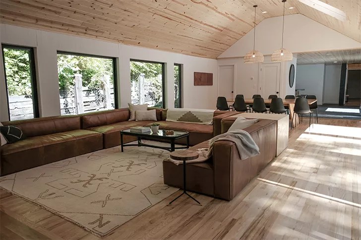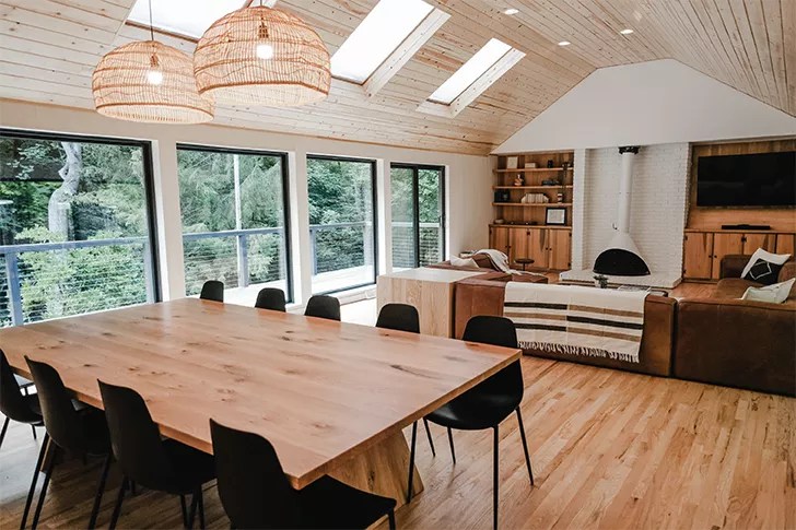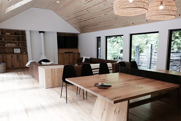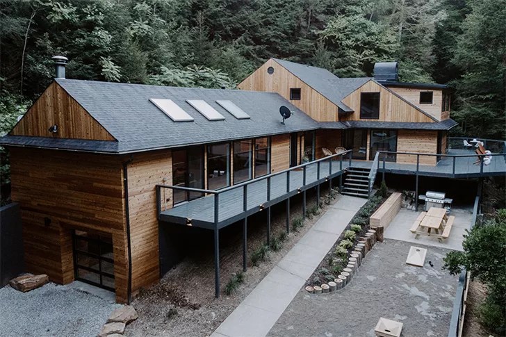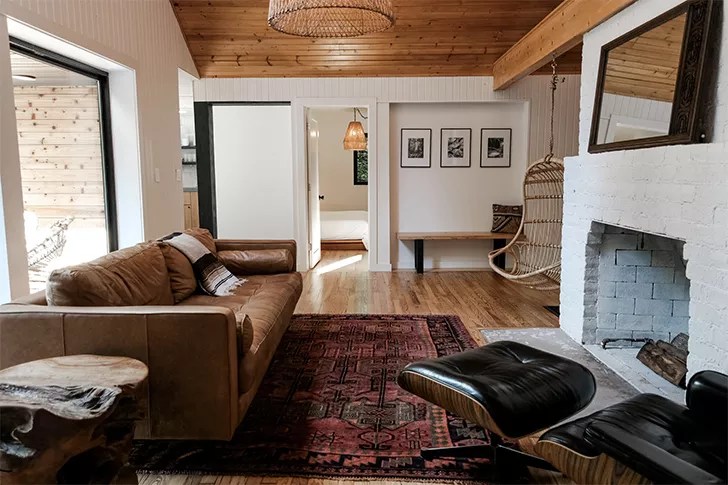 The stunning renovation was the brainchild of husband-and-wife duo Kimball and Christine, who purchased the property in December of 2019 in hopes of creating “a peaceful retreat where you can literally leave your worries at the doorstep,” according to an Instagram post. “The real art is found in the creation that surrounds the home. Its uniqueness and beauty took our breath away when we stumbled onto this property for the first time. Our goal was to take an old lodge that needed a lot of love and create something that [complements] the incredible surroundings. Through that process, our family has come to love this place and create countless special memories on its grounds. Our sincere desire is that you and your loved ones can do the same,” their website reads.